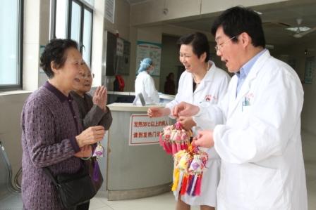 防病期间,在徐建业务院长的带领下,医务处、药剂科组织专人根据“正气存内,邪不可干”、“芳香避秽”以及中药四气五味等理论,查阅中医古籍并结合临床经验,自制防流感香袋,首批1000只香袋发放给了感染科、急诊、肺病科等与流感防治工作关系密切的临床一线医护人员及部分前来就医的呼吸道疾病患者,提高他们的抗病毒能力。